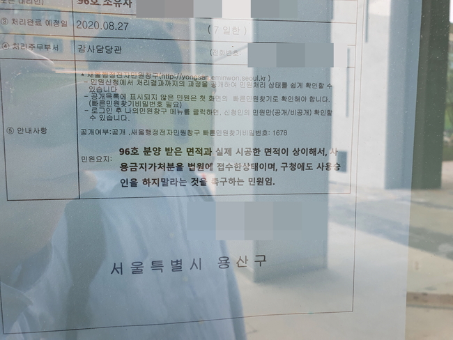 유 씨는 즉시 조합에 이를 항의했으며, 서울서부지방법원에 상가 가처분신청과 관할 용산구청에 민원을 제기했다.