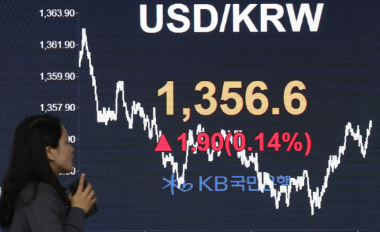 23일 서울 외환시장에서 오전 9시 26분 기준 원·달러 환율은 전 거래일(1356.6원) 보다 7.7원 내린 1349.9원에 거래 중이다. 이날 환율은 전거래일 보다 5.6원 내린 1351.0원에 개장했다. 장 초반 1346.9원까지 내려가면서 1340원대 안착을 시도중이다. 환율이 하락 전환한 것은 지난 15일 이후 6거래일 만이다.