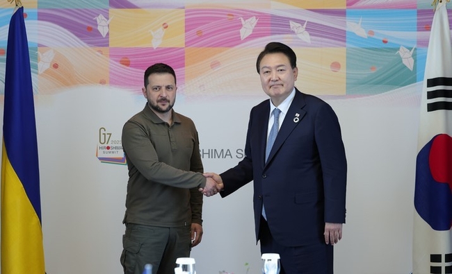 [시사뉴스 김세권 기자] 주요7개국(G7) 정상회의 참석을 계기로 히로시마를 찾은 윤 대통령은 21일 볼로디미르 젤렌스키 대통령과 일본 히로시마에서 만났다. 윤 대통령은 "지뢰제거 장비, 긴급후송차량 등 현재 우크라이나가 필요로 하는 물품을 신속히 지원할 수 있도록 노력하겠다"고 약속했다.