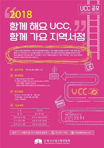 한국서점조합연합회는 “UCC 공모를 통해 책 읽는 분위기 조성과 독서문화진흥 활성화의 계기를 마련하고, 나아가 고사 위기에 빠진 동네서점들의 활성화를 위한 초석으로 작용할 수 있도록 많은 참여 부탁드린다”고 전했다.
