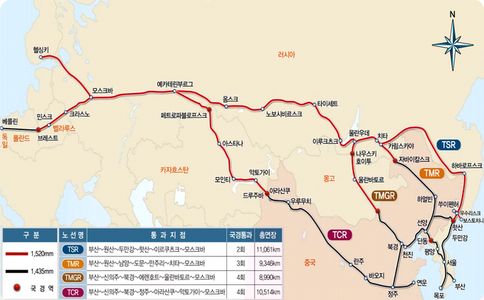 [시사뉴스 원성훈 기자] 한국-중국-일본, 남한-북한-러시아를 연결하는 광역철도망의 완성은 동북아의 자원과 잠재력을 활용해 번영의 미래, 상생의 시대를 여는데 있어서 핵심적인 수단이 될 것이다. 남과 북이 분단으로 인해 대륙과 단절됐던 ‘경제 혈관’을 연결하고 동북아를 넘어 유라시아로 경제권을 확대한다면 지구촌을 선도하는 미래의 주역으로 거듭날 수 있게 된다. 북방경제영토의 핵심 축은 한반도종단철도(TKR)을 시베리아횡단철도(TSR)와 연결해 우리나라에서 유럽까지 이르는 철도망을 구축하는 것이다. TSR로 대표되는 유라시아 철도를 이용하려면 끊어진 동해선 부터 서둘러 복원해야한다는 목소리가 나온다.