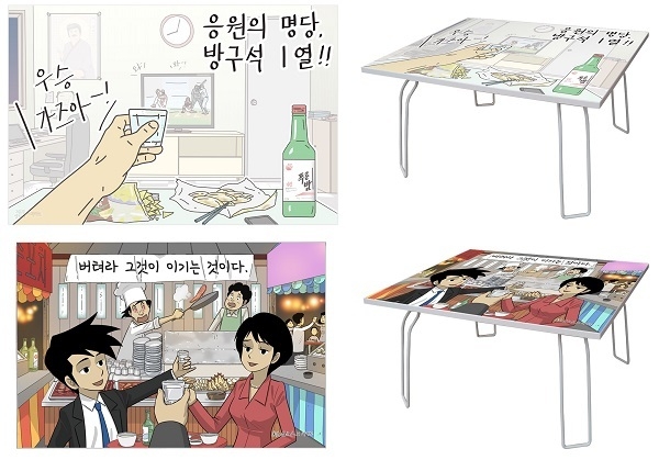 이마트는 ‘콜라보 가구’ 첫 번째 시리즈로 오는 13일부터 전국 100여개 이마트 지점과 온라인몰을 통해 ‘잡다한컷’, ‘미생’ 등 유명 웹툰 일러스트를 담은 1인 좌식 접이테이블을 판매한다고 11일 밝혔다. 이번에 선보이는 제품은 20·30대 젊은 층 1~2인 가구를 겨냥한 만큼 혼밥·혼술을 테마로 하는 유머러스한 이미지와 미생의 주인공 장그래, 안영이가 회식을 하고 있는 이미지 등을 담고 있다.