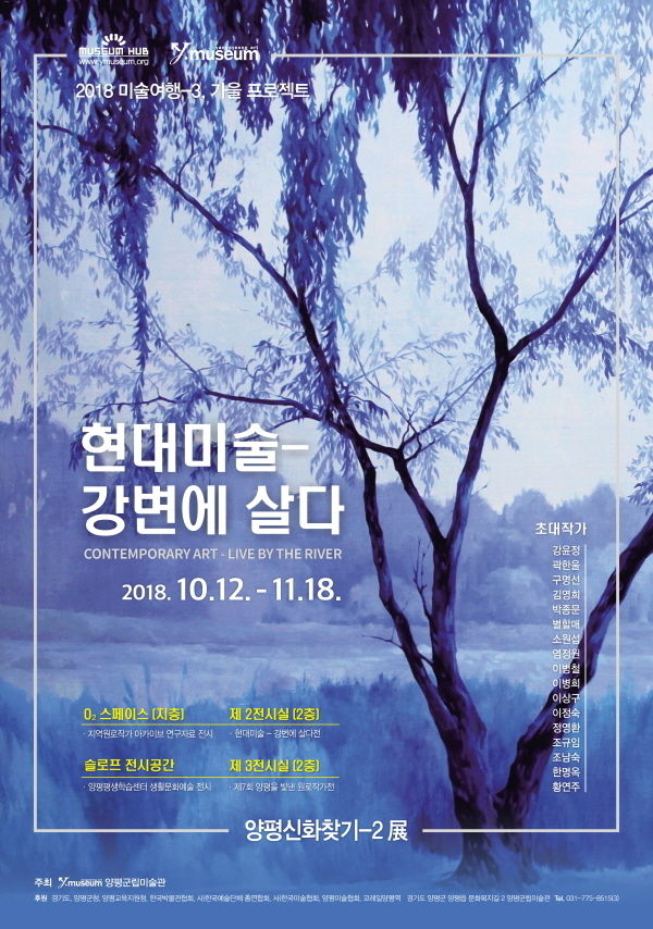 양평군립미술관 이형옥 학예실장은 이러한 천혜의 자연을 대외적으로 소개하기 위해 지난해 이어 두 번째로 양평신화 찾기를 추진하면서 친환경 자연에서 살아가는 새로운 현대미술가들로 구성하여 아름다운 양평의 자연을 나타내는 보이는 것, 보이지 않는 것에 대한 조우(遭遇) 즉,「현대미술-강변에 살다」를 준비하였다고 했다. 전시는 공간별 특색 있는 콘텐츠를 군민의 눈높이에 맞춰 친화적으로 구성해 양평군민들의 문화행복시대를 만들어냈다. 지층O₂스페이스에서는 지역원로작가 아카이브연구자료 전시를 지난해에 이어서 전시된다. 작가들은 정경자(1939년), 김의웅(1940년), 송용(1940년), 송계일(1940년), 류민자(1942년)작가가 참여하게 된다. 이들 원로작가들은 일찍이 양평으로 이주하여 양평을 제2의 고향이라 여기며 정착하여 오늘에 이른다.