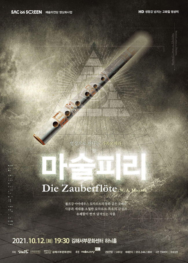 [시사뉴스 정윤철 기자] 모차르트의 동화 같은 오페라 ‘마술피리’를 대형 스크린으로 만나볼 수 있다. (재)김해문화재단 김해서부문화센터에서 오는 10월 12일 19시 30분 SAC ON SCREEN을 통해 '오페라-마술피리'를 상영한다.