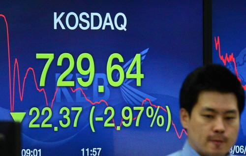 최근 코스닥 하락의 원인은 그리스 사태와 중국 증시 불안에 따른 것으로 해석되고 있다. 수급상으로는 외국인과 기관이 사흘 연속 쌍끌이 매도에 나서면서 지수를 끌어내리고 있다.