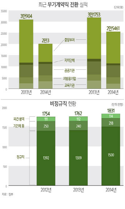앞서 정부는 2013년 9월 공공부문 비정규직의 정규직 전환을 국정 과제로 정하고 2015년까지 기간제근로자 6만5711명을 무기 계약직으로 전환하겠다고 발표했다.