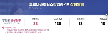 [시사뉴스 강기호 기자] 경기 양평군 서종면에서 코로나19 서울 광진구 29번 확진자와 동선이 겹친 주민 31명이 확진 판정을 받았다. 양평군재난안전대책본부는 서종면 명달리 주민 61명 가운데 31명이 코로나19 확진 판정을 받았다고 15일 밝혔다. 군대책본부는 "14일 오후 11시 30분께 명달리 주민 61명에 대해 검사를 실시했다"며 "주민 가운데 양성 31명, 보류 5명, 음성 25명으로 검사 결과가 나왔다"고 설명했다. 또 "현재 추가 역학조사가 진행 중"이라며 "연휴 기간 동안 외출과 야외활동을 전면 취소하고 추가 안전 문자 등 관련 소식에 철저히 관심을 가져 달라"고 당부했다. 앞서 군대책본부는 서울 광진구 29 확진자 관내 동선을 14일 저녁 공개했다. 광진구 29번 확진자는 서종면 주민으로 평일에 서울에 머물다가 주말에는 서종면에서 지내며 동네 마트와 음식점 등을 찾은 것으로 확인됐다고 밝혔다. 군대책본부는 광진구 29 확진자는 서종면 노문리 회관마트, 사슴농장, 수입리 산천초목, 명달리 숲속학교 등을 지난 8일부터 10일까지 2박 3일 동안 경유했다고 공개했다. 광진구 29번 확진자는 광장동 거주 80대로, 가족도 확진 판정을 받았다.