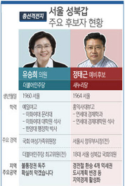[시사뉴스 김부삼 기자]4년 전 선거그대로 리턴매치가 예상되는 곳. 서울 성북갑이다.더불어민주당 현역 유승희 의원과 새누리당 정태근 전 의원이 19대에 이어 또 다시 맞붙었다. 당에서 이 지역 후보로 최종 확정된 유 의원은 현장에서 주민의견을 적극 들어오며 의정활동을 해왔다는 진정성을, 정 예비후보는 낙선 후에도 지역발전을 위해 최선을 다했다는 것과 복당에 따른 여권 지지세를 기대하고 있다. 지난 7일 오후, 각기 주민 민심 붙들기에 나선 이들의 일정을 동행했다.◆유승희 “주말없이 현장에서 뛰었다” "안녕하십니까"담소를 나누고 있는 주민 여남은 명에게 인사하는 유 의원의 목소리가 호쾌하다. 이들이 서 있는 난로 주변에서는 삼겹살과 막걸리 한 사발이 한창 오가던 중이었다. 아직 해도 지지 않은 시각. 저녁식사 전 마을 나온 주민들이 간단히 요기나 하자며 마련한 ‘막걸리 회동’이었다. 서울 성북구 북정마을은 좁은 시멘트길 사이로 낮은 슬레이트 집이 다닥다닥 붙은, 서울의 몇 안 되는 달동네다. 시인 김광섭의 ‘성북동 비둘기’ 배경이 된 곳이기도 하다. 30여년 전부터 개발 이야기는 솔솔 들려왔지만 2011년 8월 재개발 구역지정이 되면서 한옥마을이 조성된다며 개