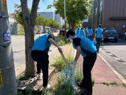 [시사뉴스 서태호 기자] 삼성전자 임직원 10명이 지난 19일 통복천 참여의숲에서 ‘도시숲 가꾸기 행사’를 개최했다. 이 도시숲은 삼성전자에서 지난해 12월 ‘자연과 소통하는 바람소리 숲정원’이라는 주제로, 교목 왕벚나무 외 2종 100그루, 관목 영산홍 외 4종 4,260그루, 초화류 구절초 외 5종 3,600그루 등 총 8,600그루의 수목을 심고 바람소리 감성시설물, 벤치, 안내판 등 조경시설물 등을 설치하여 평택시에 기부한 도시숲이다. 이번 숲가꾸기 행사는 올해만 벌써 네 번째 추진되는 행사로 삼성전자 바람소리 숲정원의 초화류 중 묵은 계절꽃을 제거하고, 가을을 만끽할 수 있도록 다채로운 색깔의 국화류 등 260그루를 심었으며, 풀뽑기, 전지, 환경정화, 관수 등 도시숲 가꾸기에 때아닌 더운 날씨에도 구슬땀을 흘렸다. 삼성전자 관계자는 도시숲 가꾸기에 지속적인 활동을 할 것이며 향후 참여의숲 조성에 노력할 것을 밝혔으며, 평택시 푸른도시사업소 산림녹지과 관계자는 “삼성전자 임직원분들과 함께 의미있는 행사를 진행하게 되어 행복한 하루였다”며 더운 날씨에 구슬땀 흘려가며 도시숲 가꾸기 행사에 참여해 주신 삼성전자 평택캠퍼스 임직원분들께 감사한 마음을 표했
