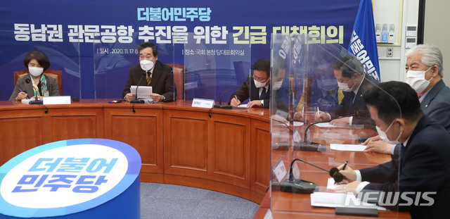 민주당은 가덕 신공항 드라이브를 걸면서도 '선거용 카드'라는 비판을 의식해 내년 부산시장 보궐선거와의 연관성에 대해선 선 긋기에 나섰다. 이낙연 대표는 관훈클럽 토론회에서 김해공항 검증에 대해 "정치적 고려가 있었다고 생각하지 않는다"고 밝혔다. 김영춘 사무총장은 "4년 전 정치적 결정이 엉터리였기 때문에 그만큼의 시간을 까먹은 셈"이라고 했다.