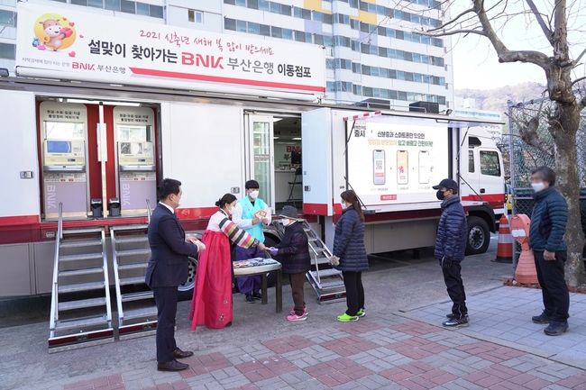 [시사뉴스 정윤철 기자] BNK부산은행은 설날을 맞이해 은행 방문이 힘든 금융소외지역의 시니어고객을 위해 찾아가는 금융서비스를 실시했다.