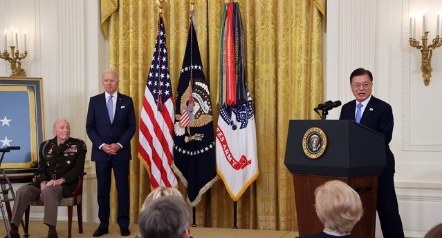 같은 날 오후 조 바이든 대통령의 초청으로 백악관에서 한국전 참전용사 명예훈장 수여식에 참석했다.