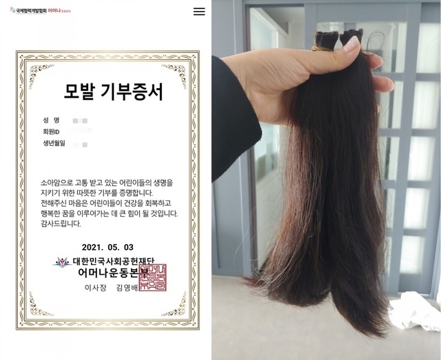 22일 뉴시스 취재에 따르면 서울에 거주하는 박모(37)씨는 코로나19 사태가 시작돼 미용실을 한동안 다니지 못하다 지난 4월 오랜만에 미용실을 찾았다. 약 1년 간이나 파마·염색을 하지 않은 채 기른 생머리를 소아암 환자들을 위해 가발을 만드는 봉사단체인 '어머나 운동본부'에 기부하기 위해서다.