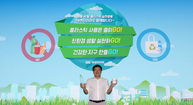 강호찬 부회장은 “플라스틱 사용은 줄이GO, 친환경 생활 실천하GO, 건강한 지구 만들GO”라는 실천 메시지를 전달하며 “넥센타이어 임직원과 함께 플라스틱 용품 사용을 자제하고 불편하더라도 다회용품을 적극 사용해 보다 건강한 지구를 다음 세대에 물려주기 위해 앞장서겠다”고 밝혔다.