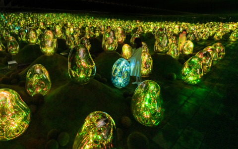 하늘에 만개한 1만3000여종의 난초에 흠뻑 취해 꽃과 하나가 되는 경험을 만끽할 수 있는 정원, 사람의 손에 밀치거나 바람을 맞으면 빛을 발하며 공명하는 난형 물체로 가득 채운 이끼 정원이 관람객을 맞이한다.