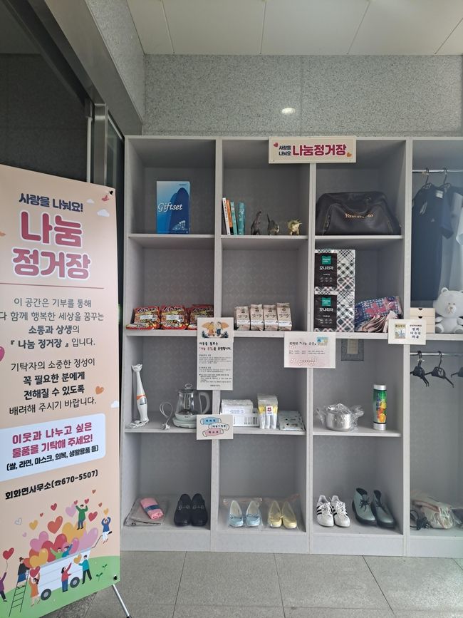 '나눔정거장'은 재활용이 가능한 생필품 등을 기부받아 필요한 주민이 가져가서 사용할 수 있도록 하고 자원의 재활용과 생활쓰레기 절감을 실천하는 취지로 마련됐다.