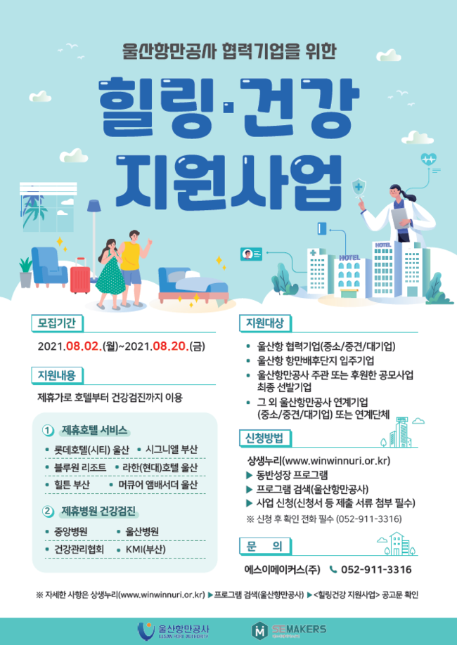 사업신청은 상생누리 사이트에서 ‘울산항만공사’로 검색하여 신청할 수 있으며, 자세한 사항은 사업 운영사 에스이메이커스(주)로 문의 가능하다.