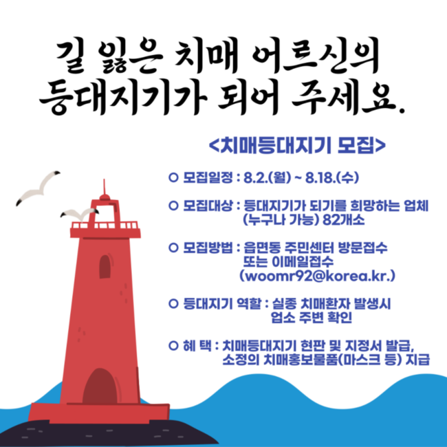 ‘치매등대지기 사업’이란 민간업체를 대상으로 실종 치매환자 발생 시 경남도 광역치매센터로부터 송출된 비상 문자를 받고 즉시 가게 주변을 탐색하고, 길을 잃고 배회하는 치매환자 발견 시 신속하게 경찰서로 신고해 가정으로 복귀를 지원하는 치매환자 실종예방사업이다.