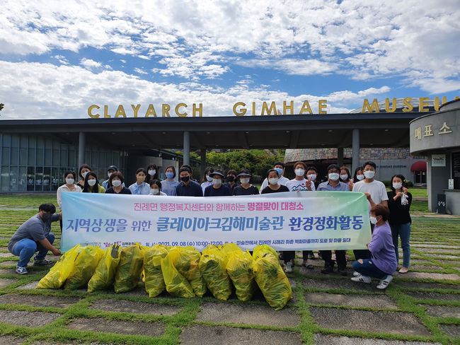 [시사뉴스 정윤철 기자] (재)김해문화재단 클레이아크김해미술관 직원 30여 명이 8일 오전 10시 진례면 행정복지센터와 함께 추석맞이 환경정화활동에 나섰다.