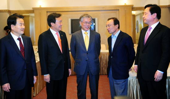이날 모임에는 손학규 대표·김진표 원내대표 등 민주당 지도부 전원과 이해찬·문재인 등 혁신과통합 상임대표단 6명, 박원순 서울시장 등이 참석했다.