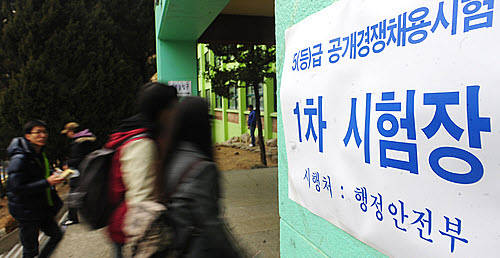분야별 경쟁률을 보면 행정직군은 500명 선발예정에 6만3487명이 원서를 접수해 127.0대 1(전년도 122.8대 1), 기술직군은 130명 선발에 7910명이 원서를 접수, 60.8대 1(54.7대 1)로 나타났다. 총 47명을 선발하는 장애인 구분모집단위는 1671명이 원서를 접수해 35.6대 1의 경쟁률을 보여 작년 39.1대 1보다 다소 감소했다.