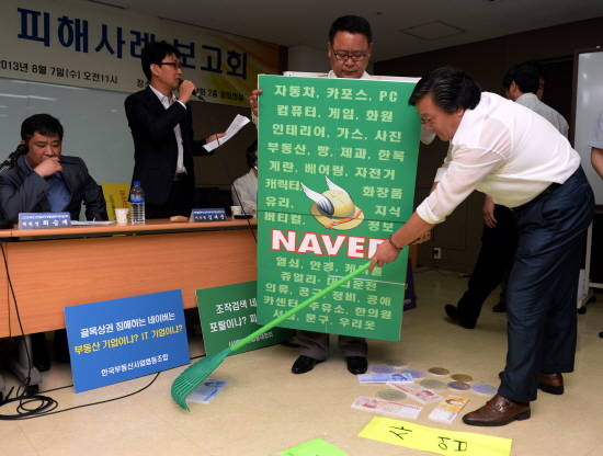 강 원내대변인은 "지난 7월 23일 공정과 상생의 인터넷 사업을 위한 현장 간담회를 개최한 결과 국내 대표 포털 업체인 네이버가 시장 지배력을 남용해 게임, 도서, 부동산 등 문어발식 확장으로 중소사업자의 생존을 위협하는 등 인터넷 시장을 황폐화 시키고 있다는 비판이 잇따랐다"고 말했다.