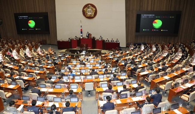 이외에도 2030년 온실가스 감축 목표(NDC)를 2018년 배출량 대비 35% 이상 감축하도록 하는 탄소중립법, 2022~2025년 방위비를 국방비 증가율에 연동해 인상하는 한미 방위비분담금 특별협정 비준동의안이 통과됐다.