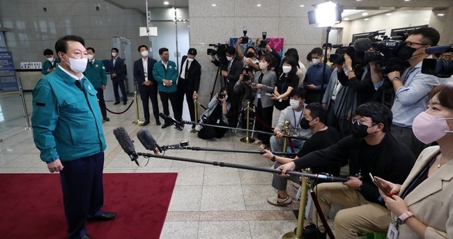 아울러 "아무리 어려운 일이 있더라도 모든 공무원과 국민이 일치단결해서 노력하면 가족과 이웃을 지킬 수 있다"며 "이런 재난상황 실시간으로 보도해서 국민의 안전을 지키는 데 언론도 협조해달라"고 부탁했다.