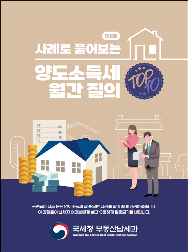 이에, 국세청에서는 국민들의 이해에 도움이 되도록 어려운 법령용어보다 일상용어를 사용하여 국민들이 자주 묻는 양도소득세 질의·답변 사례를 쉽게 풀어서 매월 안내하고 있다.