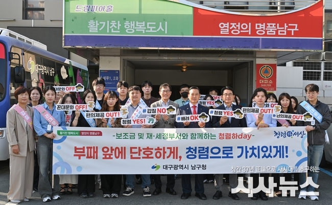 [시사뉴스 장시목 기자]대구 남구는 지난 10월 1일 보조금 및 재·세정 부서 합동 청렴 캠페인을 실시했다고 밝혔다.