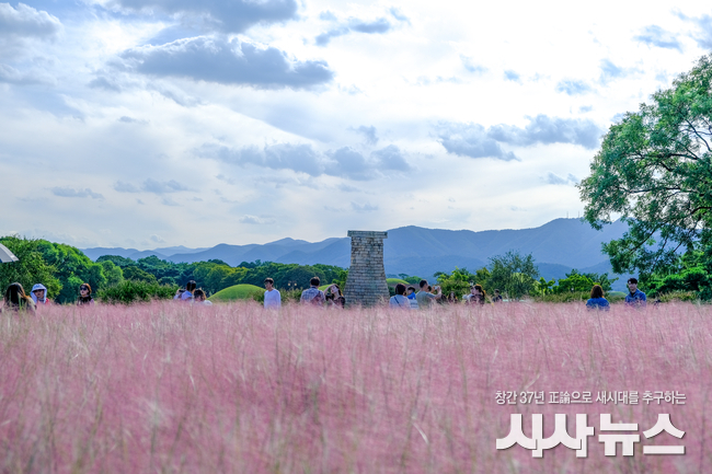 경주의 상징적 건축물인 첨성대는 가을이면 새로운 색으로 물든다. 첨성대 주변에 펼쳐진 핑크뮬리 군락지는 분홍빛 물결을 이루며, 바람에 따라 출렁이는 모습이 마치 분홍빛 안개처럼 신비로워 인생사진을 남기고 싶은 여행객들에게 큰 인기를 끌고 있다. 낮에는 파란 가을 하늘과 어우러지고, 저녁 무렵에는 노을빛과 섞여 황홀한 풍경을 선사한다. 첨성대의 고풍스러움과 핑크뮬리의 화사함이 만나면서, 천년의 역사가 낭만적인 풍경 속에 스며든다.