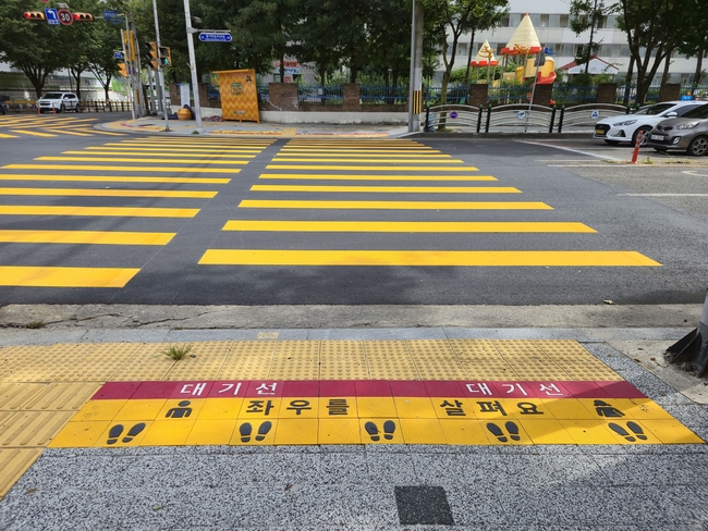 [시사뉴스 이성동 기자] ○ 이번 개선 사업은 운전자와 어린이 모두의 안전 의식 및 물리적 안전수준을 높이는 데 중점을 두었다. 횡단보도 앞 옐로카펫 설치는 운전자의 시인성을 높여 서행을 유도하며, 노란발자국은 어린이들이 차도와 안전거리를 두고 신호를 기다리도록 유도한다.