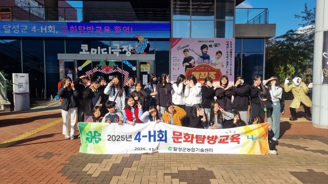 [시사뉴스 이성동 기자] 달성군농업기술센터(소장 오명숙)는 지난 11월 1일 4개 학교 4-H회원 및 지도교사 40여 명을 대상으로 청도 이서면에 위치한 한국코미디타운과 청도박물관을 방문해 문화탐방교육을 진행했다.