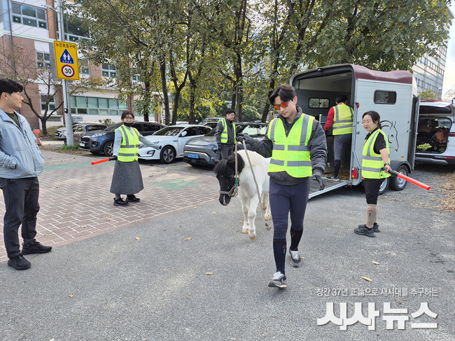 [시사뉴스 하정수 기자] 대구공공시설관리공단(이사장 문기봉)은 10월 31일(금) 신천둔치 두산교 하단에서 대덕승마장 화재 대비 마필 대피훈련을 실시했다.