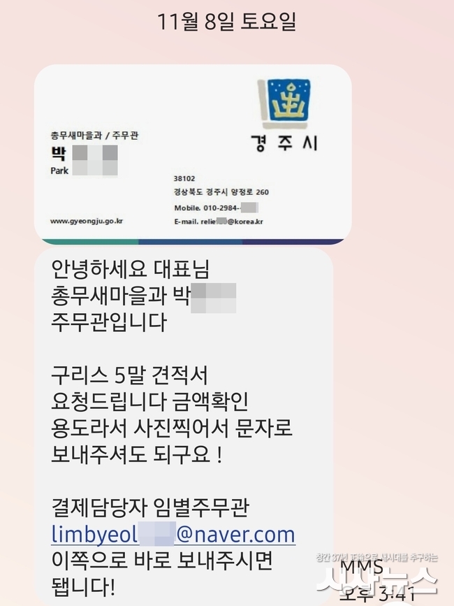경주시는 사칭자가 사용한 전화번호(010-2984-××××)와 이메일 계정(limbyeol×××@naver.com)을 확인하고, 경찰에 수사 의뢰를 검토 중이다.