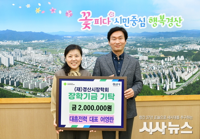 [시사뉴스 장시목 기자](재)경산시장학회(이사장 조현일)는 14일 대흥전력 주식회사(대표이사 여영란)가 지역인재 육성을 위한 장학금 200만 원을 기탁했다고 밝혔다.