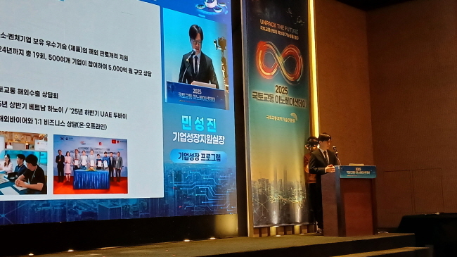 민성진 KAIA 기업성장지원실장은 이 국토교통 스타트업의 성장을 위한 전주기 지원 프로그램에 대해 발표했다. 민 실장은 국토교통 분야 예비 창업자부터 글로벌 진출까지 아우르는 체계적인 지원 로드맵을 발표했다.