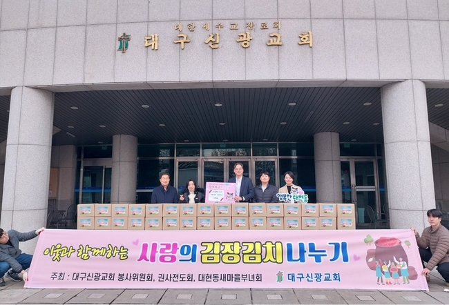 [시사뉴스 이성동 기자] 대구 북구 대현동에 소재한 신광교회(목사 전광민)는 12월 11일(목) 겨울철을 맞이하여 관내 저소득층을 가정을 위한 김장김치(10kg) 100박스 나눔 행사를 진행했다.