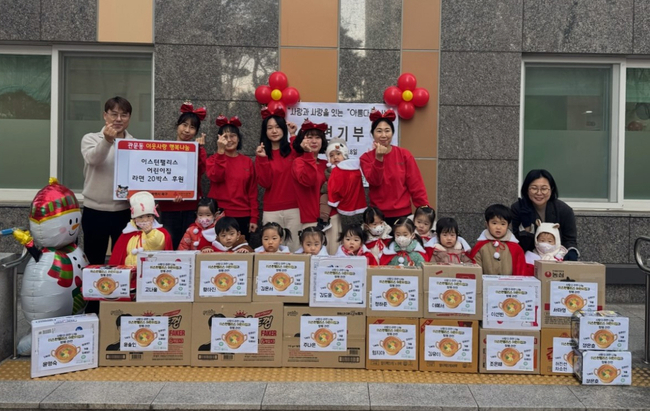[시사뉴스 이성동 기자] 대구 북구 관문동에 위치한 이스턴팰리스 어린이집(원장 정진희)은 12월 18일(목) 원생들이 각 가정에서 직접 가지고 온 라면 20박스를 관문동 행정복지센터에 기탁했다.