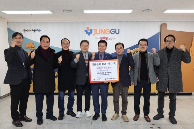 류규하 중구청장은 “지역 상생과 나눔을 실천해 주신 서문시장 상가연합회와 대구교통공사에 깊이 감사드린다”며 “성금은 도움이 꼭 필요한 이웃들에게 소중히 전달하겠다”고 말했다.