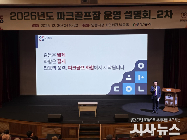 [시사뉴스 장시목 기자]안동시는 파크골프장 직영 운영과 관련한 시민 의견을 수렴하고 향후 운영 방향을 공유하기 위해, 지난 12월 22일에 이어 12월 30일 ‘2026년 안동시 파크골프장 2차 운영 설명회’를 안동시민회관 낙동홀에서 개최했다.