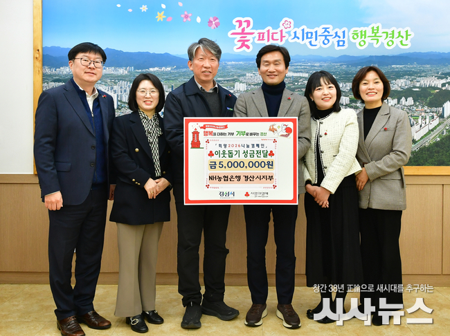 [시사뉴스 장시목 기자]NH농협은행 경산시지부(지부장 이재근)는 14일 경산시청을 방문하여 지역 내 어려운 이웃을 돕고자 성금 500만 원을 기탁했다.
