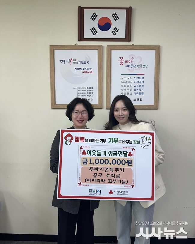 [시사뉴스 장시목 기자]경산에 거주하는 동영상 크리에이터 김수진씨는 13일 경산시청을 방문하여 지역 내 어려운 이웃을 돕고자 이웃돕기 성금 100만 원을 기탁했다.