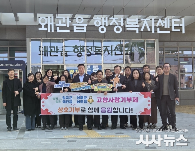 [시사뉴스 이성동 기자] 왜관읍은 지난 10일 왜관읍 ·성주읍 직원등 20여명이 왜관읍 행정문화 복합플랫폼에서 고향사랑기부금 상호기부 전달식을 가졌다.