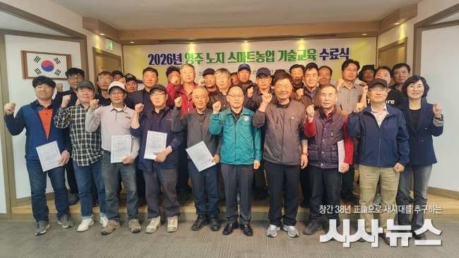 [시사뉴스 장시목 기자]영주시농업기술센터는 지난 23일 농업체험교육관에서 교육생과 관계자 등 36명이 참석한 가운데 ‘영주 노지 스마트농업 기술교육’ 수료식을 개최했다.