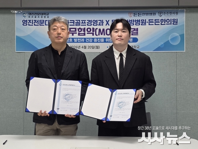 [시사뉴스 장시목 기자]영진전문대학교 파크골프경영과와 든든한방병원·든든한의원은 4월 20일, 상호 협력을 위한 업무협약(MOU)을 체결했다.