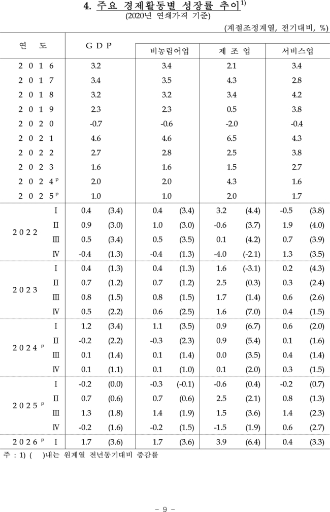 2026년 1분기 실질 국내총생산을 경제활동 측면에서 보면 농림어업은 재배업을 중심으로 전기 대비로 4.1% 증가해 올 1분기 경제성장률을 전기 대비로 0.1%p 올렸다.