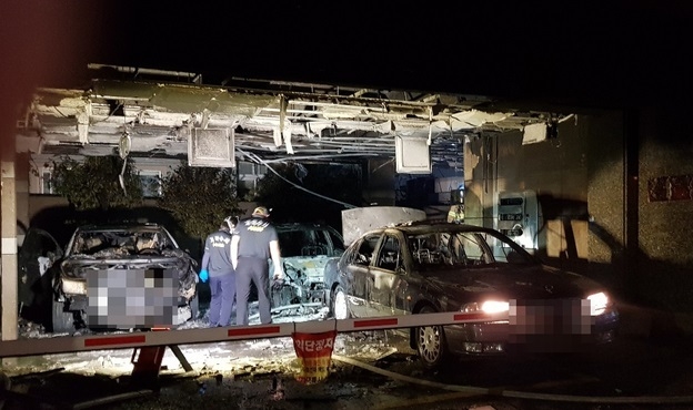 경찰은 CCTV영상을 확인한 결과, 주차 차량 1대의 밑에서 불꽃이 튀면서 연기가 나고, 차량에 접근한 사람이 없는 것으로 미뤄 차량 결함으로 불이 난 것으로 추정했다.
