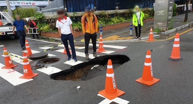 [시사뉴스 강민재 기자] 8일 오전 10시 30분께 울산시 동구 일산해수욕장 인근 사거리에서 싱크홀이 발생했다.