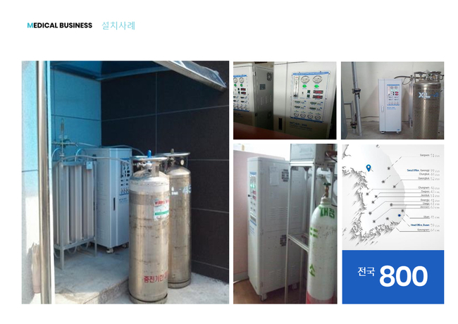 의료용 제품인 MOSS(Medical Oxygen Supply System) 시리즈는 기존 고압·기체 산소를 대체할 수 있는 산소공급시스템으로 승압 장치를 추가하여 더욱 안정적으로 산소를 공급할 수 있다. 설치가 간편할 뿐 아니라 필요 용량에 따른 별도 세트 구성으로 대형병원과 중·소형 병원 모두 적용 가능하며 모니터링 시스템을 통해 산소공급 상태를 확인·조절할 수 있으며 자체 알람 기능을 통해 편리함과 안정성을 확보했다.